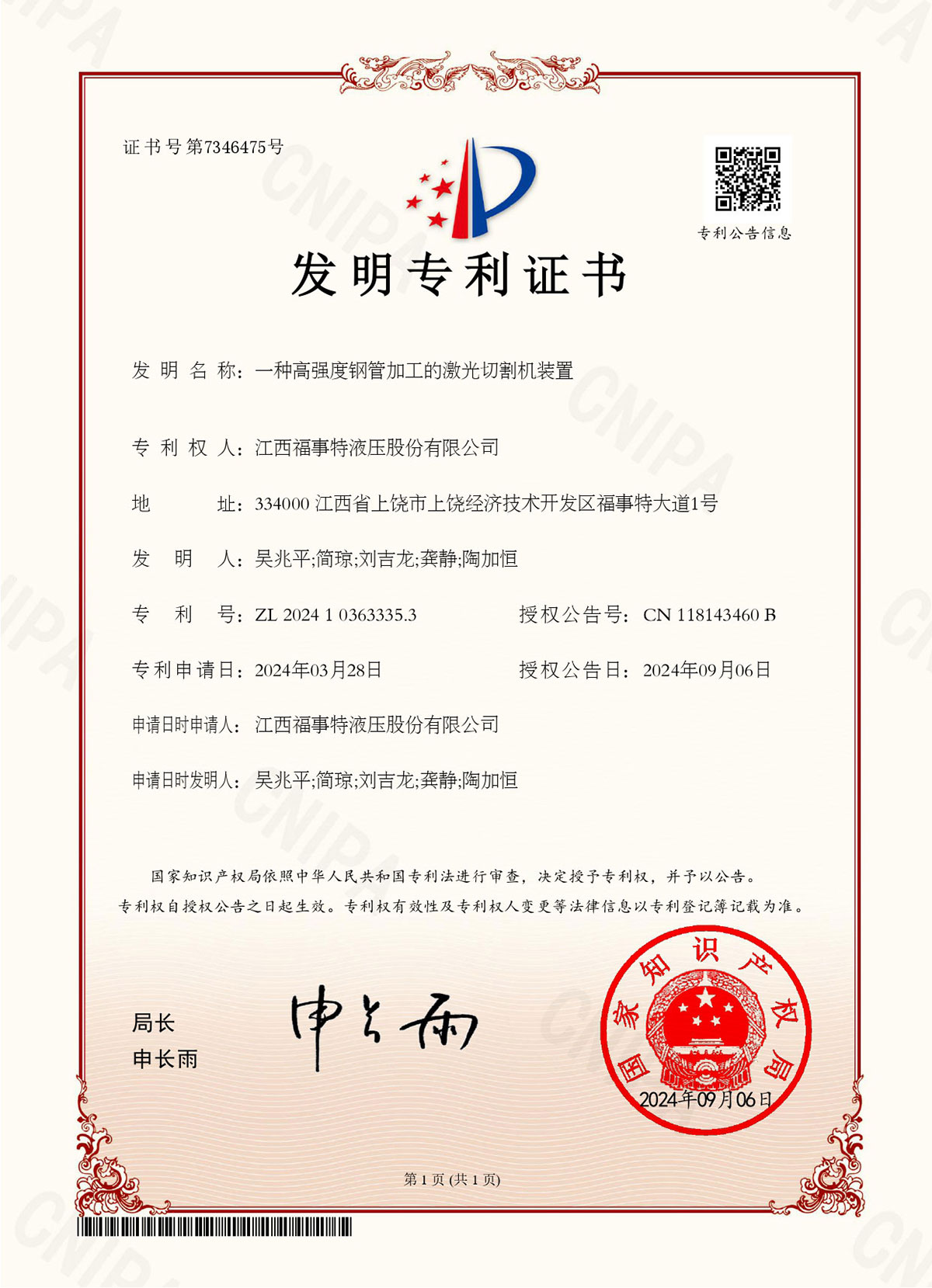 专利证书