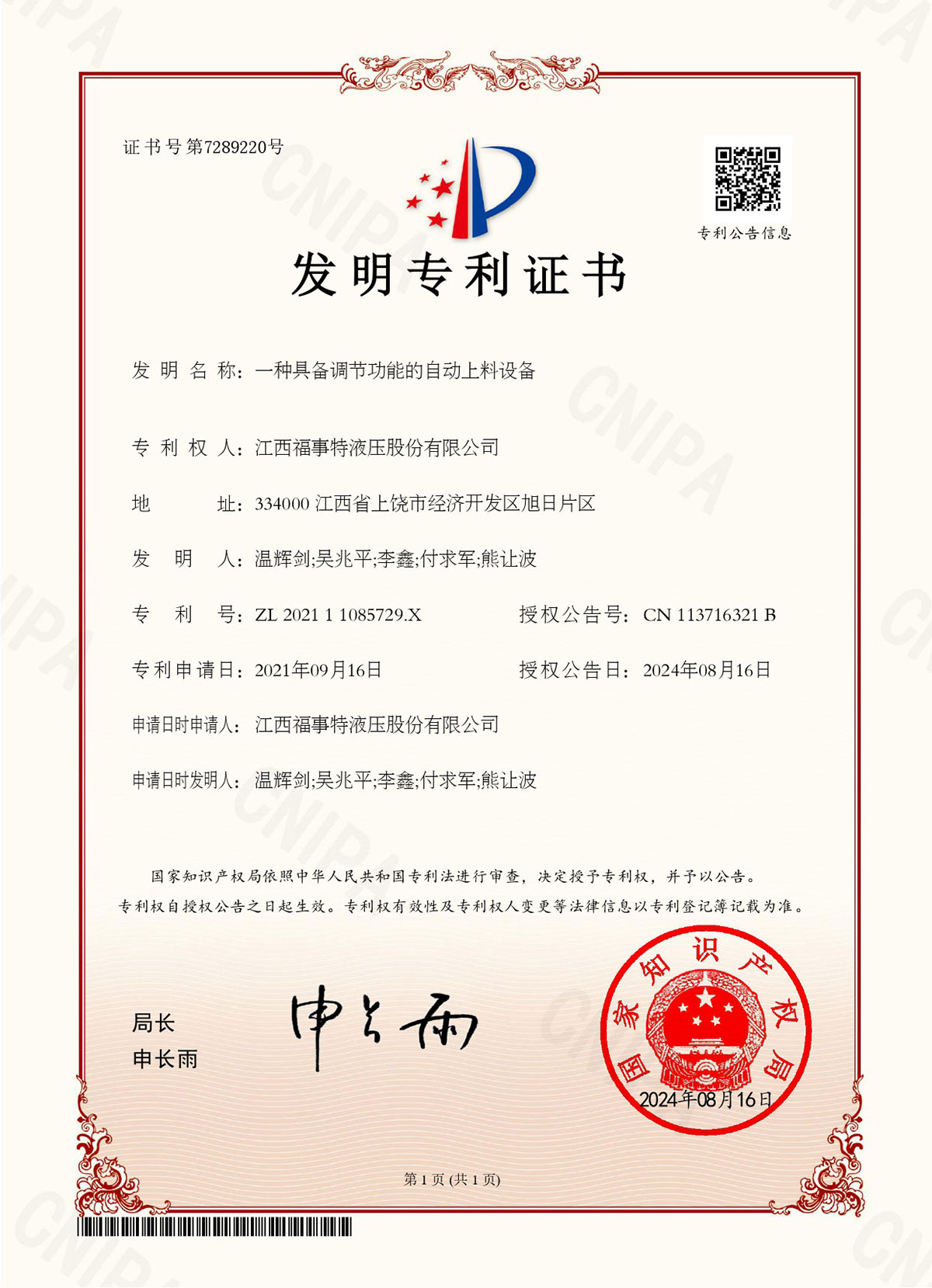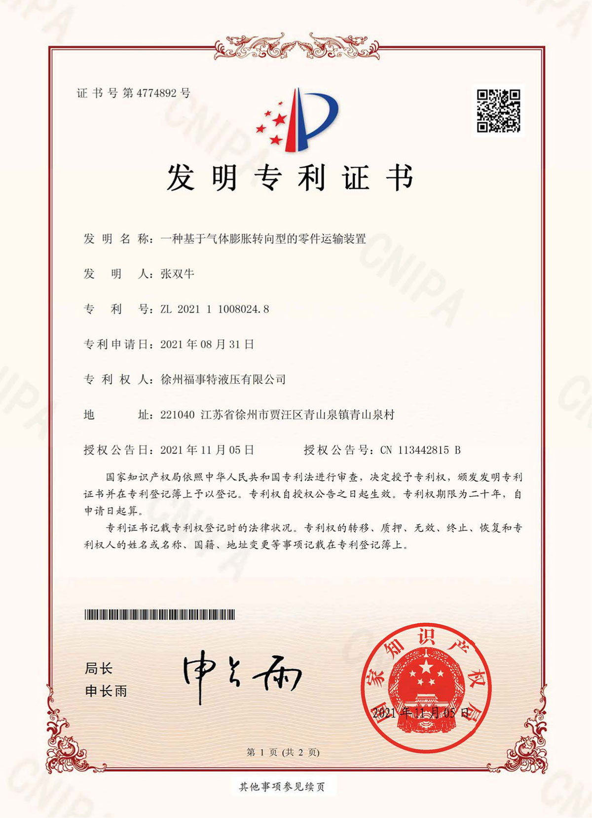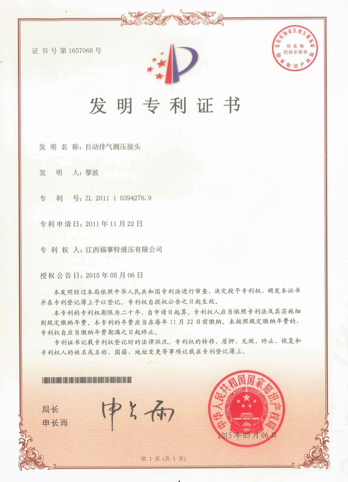 专利证书